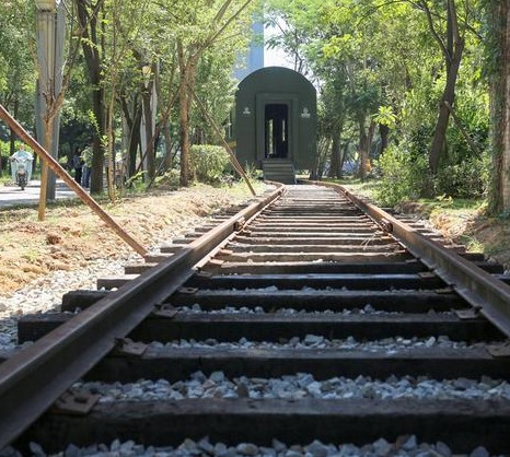 昨日上午,记者到马尾探访这座铁路公园。从青洲路进入君竹河沿线的景观带,两侧是原生的榕树,茂密的树冠遮住了烈日。步行三四百米后,就可遇见这条位于马尾互通高架下的铁轨。